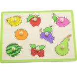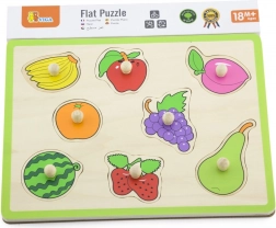Každý ovocný dielik má malý drevený gombík, ktorý uľahčuje manipuláciu a podporuje rozvoj jemnej motoriky a koordinácie oko–ruka.