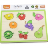 Farebná drevená vkladačka s motívmi ovocia pre deti od 18 mesiacov rozvíja jemnú motoriku, rozpoznávanie tvarov a farieb aj koordináciu oko–ruka. Vďaka dreveným úchytom sa dieliky ľahko držia a skladajú, ideálne na prvé logické hry.
