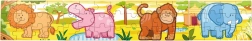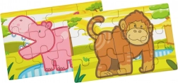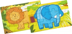Táto sada drevených puzzle s veselými zvieratkami z džungle poteší každé dieťa. Každý motív má jasné farby a jednoduché tvary, ktoré uľahčujú skladanie a prirodzene rozvíjajú detskú predstavivosť. Z dielikov možno poskladať aj štyri samostatné obrázky, aj jeden dlhý panoramatický motív všetkých zvieratiek.