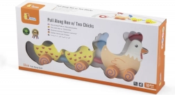 Táto drevená ťahacia hračka spája sliepočku a dve kuriatka červenou šnúrkou. Medzi kuriatkami sú umiestnené farebné koráliky, ktoré pri pohybe zaujmú zrak aj sluch dieťaťa. Pri ťahaní sa celá veselá „rodinka“ roztomilo pohupuje a motivuje deti k chôdzi.