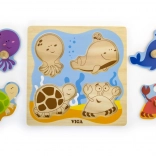 Drevené vkladacie puzzle s morskými zvieratkami sú ideálnou voľbou pre deti, ktoré chcú rozvíjať svoje motorické zručnosti. Tento set obsahuje štyroch rozkošných morských tvorov: chobotnicu, veľrybu, korytnačku a kraba, každý s praktickým dreveným úchytom.