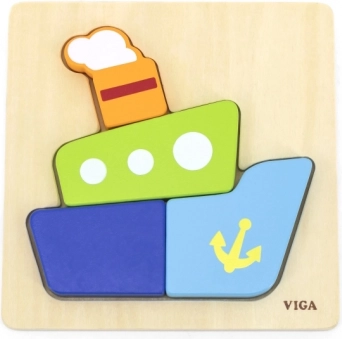 Viga drevené mini puzzle loď pre najmenších. 4 dieliky, bezpečné netoxické farby, hladké hrany. Rozvíjajú motoriku a logiku. Ideálne do škôlky aj domov.