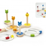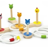 Drevená hra VIGA hádzania krúžkov je zábavná a aktívna hra pre rodinu a priateľov, ktorá podporuje koordináciu ruka-oko a zručnosti vašich detí vďaka farebným figúrkam a jednoduchým pravidlám.
