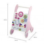 Chodítko je vybavené gumovými kolieskami, ktoré zabraňujú kĺzaniu a zabezpečujú bezpečnosť pri chôdzi. Celá hračka je zhotovená z lakovaného dreva, čo poskytuje hrejivý a prírodný dotyk, zároveň je veľmi odolné voči opotrebeniu. Zabalená v farebnej krabici s úchytmi, je ideálna ako darček.