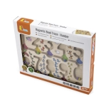Pri každej číslici je iný obrázok zvieratka a zodpovedajúci počet korálok, napríklad 1 kravička, 2 psíky, 3 ovečky atď. Doska je vybavená magnetickým perom, ktorým deti môžu korálky premiestňovať. Ideálne pre deti od 18 mesiacov.