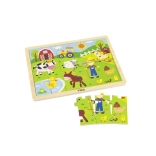 Toto drevené puzzle s farmárskym motívom je ideálne pre deti, ktoré sa práve zoznamujú so svetom skladania a hlavolamov. Obrázkové zobrazenie farmy je farebné a atraktívne, lákajúce k hre a učeniu. Puzzle je možné
