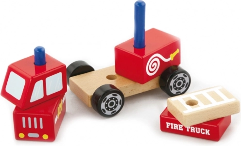 Ukladaj jednotlivé drevené diely na podvozok a vytvor si vlastné hasičské auto. Deti si trénujú trpezlivosť aj koordináciu krok za krokom.