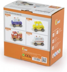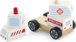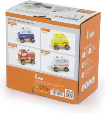 Táto drevená sanitka je skvelou kombináciou skladačky a pojazdného autíčka. Deti môžu jednotlivé diely zostaviť do podoby sanitky a potom si užiť jazdu vďaka hladko sa otáčajúcim kolieskam. Robustné drevo, kvalitné farby a zaoblené hrany zaisťujú bezpečné hranie a dlhú životnosť.