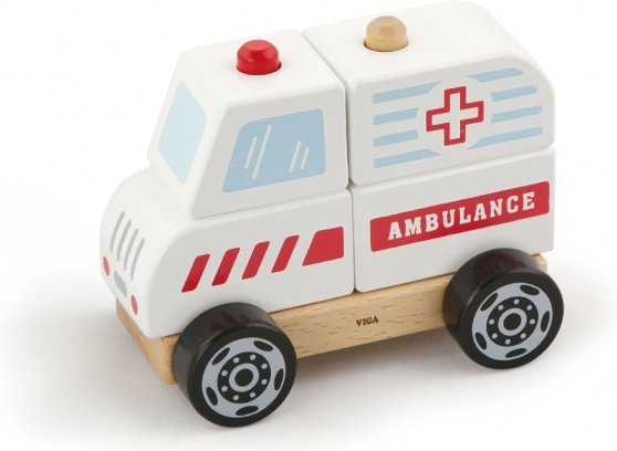 Objavte kvalitnú drevenú sanitku, ktorá kombinuje skladacie kocky a pohyblivé kolieska pre zábavnú hru aj rozvoj motoriky. Bezpečné prevedenie s hladkými hranami, ideálne pre deti od 18 mesiacov. Kompaktné rozmery, odolné materiály a atraktívny dizajn s potlačou AMBULANCE zaručia hodiny tvorivej zábavy.