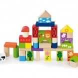 Drevená stavebnica farma – 50 kociek v kýbliku