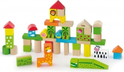 Objavte hravú stavebnicu, ktorá rastie s vašimi deťmi. Sada drevených kociek s motívmi zoo ponúka pestrú paletu tvarov a farieb, ideálnu na prvé stavby, triedenie aj rozvoj fantázie. Súčasťou je obrázková brožúra so stavebnými plánmi v 3 náročnostiach, takže si prídu na svoje začiatočníci aj malí stavitelia.
