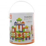 Drevené stavebné kocky v vedierku – 50 dielikov