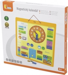 Tento veľký drevený kalendár je ideálnou pomôckou na každodenné učenie aj hranie. Vďaka prehľadnému rozloženiu a českým popisom si deti rýchlo osvoja orientáciu v čase – od hodín a dní až po mesiace a ročné obdobia. Magnetické doštičky možno jednoducho presúvať, takže učenie je interaktívne a zábavné.