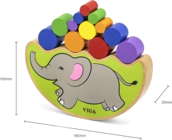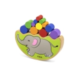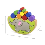 Táto chytrá balančná hra so slonom prináša napätie aj radosť do každého kola. Deti podľa hodu kockou pracujú s farebnými valčekmi a učia sa rovnováhe, rozpoznávaniu farieb a súladu pohybov. Hra je vyrobená z hladko opracovaného dreva s pestrými, bezpečnými farbami.