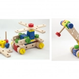 Táto kvalitná drevená stavebnica prináša deťom nekonečné možnosti tvorenia. Vďaka 53 farebným dielikom, kolíkom, skrutkám a spojkám ľahko postavia jednoduché modely aj fantazijné konštrukcie. Súčasťou je prehľadná obrázková brožúra, ktorá inšpiruje a krok za krokom prevedie prvými projektmi.