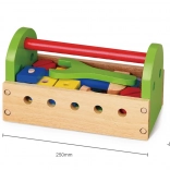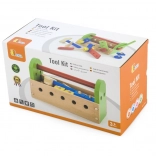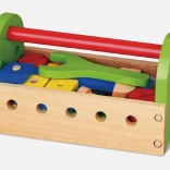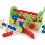 Zábavná a bezpečná drevená sada náradia pre malých majstrov od 3 rokov v praktickej prepravke. Obsahuje skrutkovač, kladivko, kľúč a farebné skrutky, matice a doštičky na skrutkovanie. Podporuje jemnú motoriku, koordináciu a fantáziu vďaka kvalitnému drevenému vyhotoveniu.
