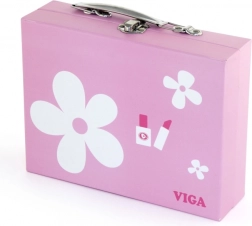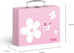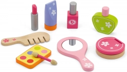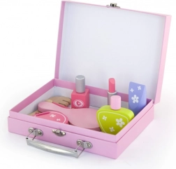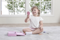 Táto drevená sada kozmetiky v kufríku prináša deťom radosť z napodobňovania dospelých a pritom je úplne bezpečná. Všetky súčasti sú farebné, príjemné do ruky a uložené v pevnom prenosnom kufríku, takže sa ľahko upratujú aj berú na cesty.