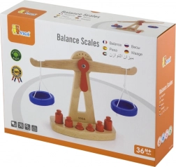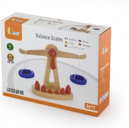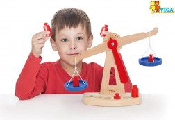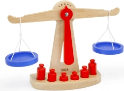 Drevená balančná váha značky Viga je vybavená dvoma modrými miskami zavesenými na povrázkoch a obsahuje šesť červených závaží rôznych veľkostí. Vďaka svojmu farebnému dizajnu a bezpečnej povrchovej úprave prináša táto váha deťom veľa zábavy. Váha je navrhnutá tak, aby deti motivovala používať svoju predstavivosť a fantáziu pri hre na obchod, čo im pomôže pochopiť základné matematické koncepty a hodnotu rovnováhy.