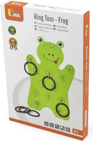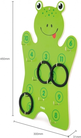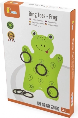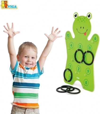 Súčasťou je drevená doska v tvare žaby a 6 krúžkov – stačí rozbaliť a začať hádzať.