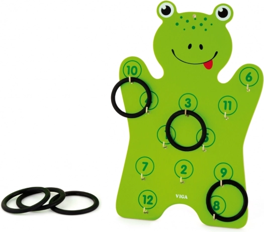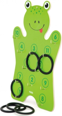 Drevená hra hádzanie krúžkov v tvare žaby. Rozvíja koordináciu a presnosť, obsahuje 6 krúžkov. Ideálna pre deti 3+. Kvalitné drevo, jednoduché pravidlá.