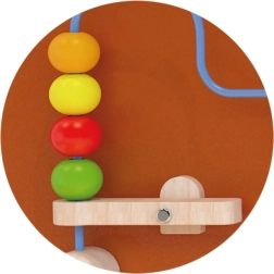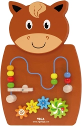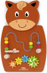Drevená aktívna doska v tvare koňa je jednou z popredných hračiek rozvíjajúcich kreativitu a učenie detí. Je vybavená drevenými ozubenými kolieskami a dráhou pre koráliky na drôtiku, ktoré môžu deti posúvať pomocou pákového mechanizmu. Táto hračka zaujme svojou pestrosťou farieb a tvarov, čím napomáha rozvoju schopnosti rozpoznávať farby a tvary.