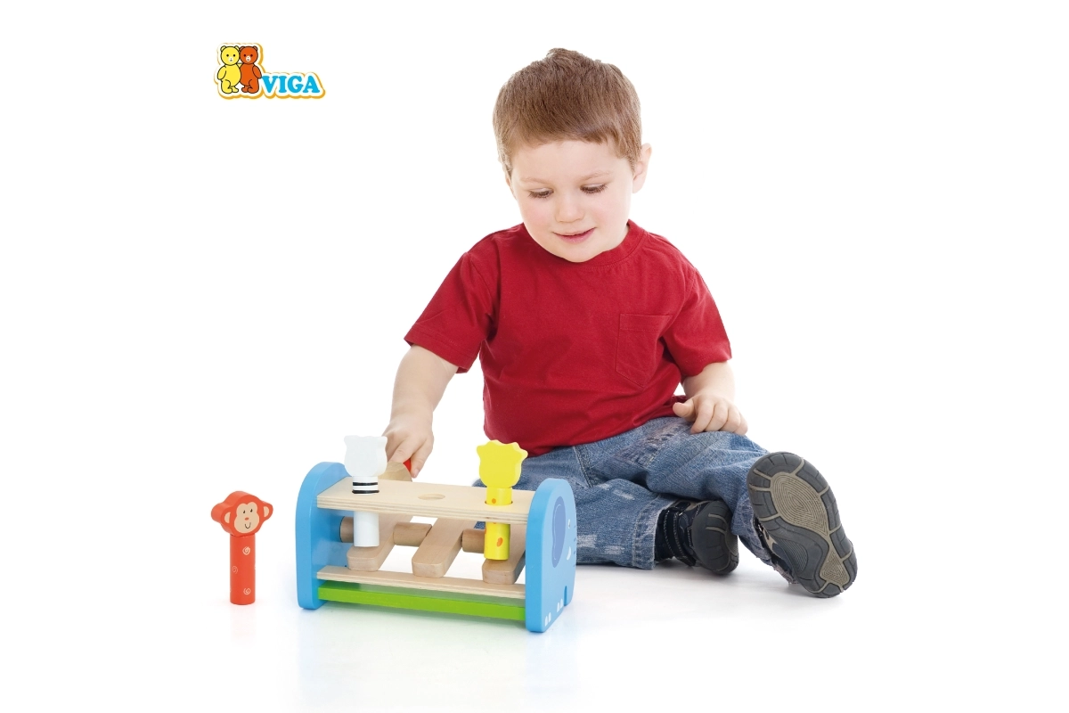 Údery kladivkom rozvíjajú úchop, silu a koordináciu oko–ruka, zatiaľ čo princíp príčina–následok učí deti logickému mysleniu.