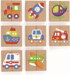 Toto puzzle pomáha deťom rozvíjať ich logické myslenie kombináciou farebných obrázkov do kompletných dopravných prostriedkov.