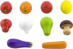 Táto sada dreveného ovocia a zeleniny je perfektnou hračkou pre malých kuchárov a kuchárky. Každé ovocie a zelenina je starostlivo vyrobená z kvalitného dreva a natretá bezpečnými farbami, ktoré sú vhodné aj pre malé deti.