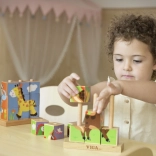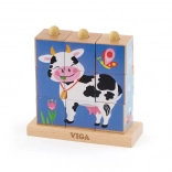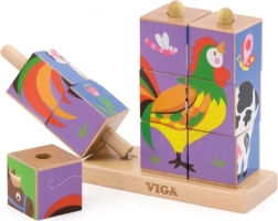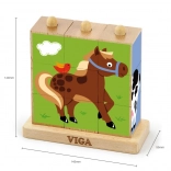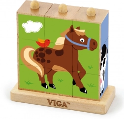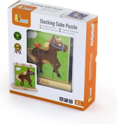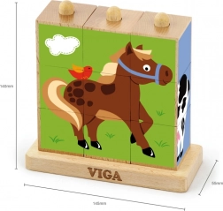 Z 9 kociek poskladáte 4 rôzne motívy – kravičku, sliepočku, koníka a psíka. Deti si precvičia vizuálne skladanie, rozlišovanie farieb a trénujú trpezlivosť.