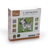 Drevená skladačka VIGA Zoo je ideálna prvá puzzle pre deti od 2 rokov. Štyri robustné kocky poskladajú dokopy šesť veselých ilustrácií zvierat, ktoré lákajú k objavovaniu a rozvíjajú predstavivosť. Hra je intuitívna, zábavná a skvele trénuje sústredenie aj trpezlivosť.