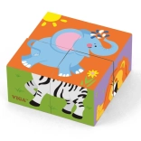 VIGA drevené kocky Zoo – 6 obrázkov, 4 diely