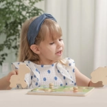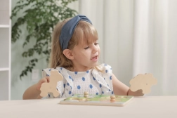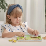 Vkladanie posilňuje jemnú motoriku, koordináciu oko–ruka a trpezlivosť. Ideálna voľba pre prvé didaktické hry.