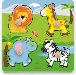 Táto kvalitná drevená vkladačka so štyrmi zvieratkami zo zoo ponúka bezpečnú a podnetnú hru pre batoľatá. Vďaka veľkým dreveným úchytom deti ľahko uchopia každý dielik a naučia sa ho správne vložiť na miesto – pomôže im tiež obrázok pod dielikom, ktorý vedie k úspechu a radosti z dokončenia.