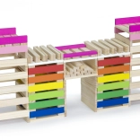 Kocky sú lakované netoxickými farbami v živých farbách, aby zabezpečili bezpečnú hru.