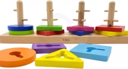 Drevený geometrický triediaci skladací set Viga ponúka deťom zábavu pri učení sa kľúčovým zručnostiam. Skladá sa z piatich kolíkov, na ktoré deti umiestňujú príslušné tvary, a výzvou je správne zladenie tvarov k zodpovedajúcim výstupkom. Jasné farby priťahujú a stimulujú zmysly malých detí.