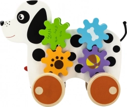 Tento drevený ťahací pes je navrhnutý tak, aby stimuloval nielen fyzickú aktivitu dieťaťa, ale aj jeho kognitívne zručnosti. Keď psík ide, ozubené kolieska sa točia, čo vytvára interaktívny zážitok pre malých prieskumníkov.