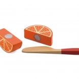Ovocie spojené suchým zipsom vytvára pri „krájaní“ autentický odpor a zvuk. Deti si precvičia bezpečnú prácu s nožom a zlepšia koordináciu.