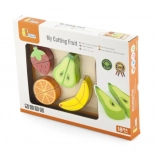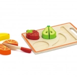 Sada obsahuje dosku, drevený nôž a rozličné farebné ovocie, ktoré skvelo padne do detských rúk. Robustné drevené prevedenie a hladké hrany sú zárukou dlhej životnosti aj bezpečnej hry.