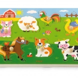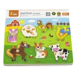 Drevená vkladačka so zvieratkami, zvuková. Po vložení správneho zvieratka sa ozve zvuk, ktorý zvieratko vydáva. Rozmery dosky cca 30 x 22,5 x 2 cm. Napájanie 2 x AAA batérie (nie sú súčasťou balenia). Rozmery balenia cca 30 x 27 x 2 cm. Vek 18m+