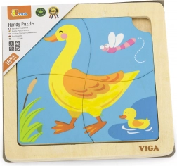 Drevené puzzle Viga obsahujú štyri tematické dielky, ktoré sa ľahko montujú na dosku s obrázkom. Každý dielik je vyrobený z kvalitného dreva a maľovaný bezpečnými, netoxickými farbami, ktoré zabezpečujú bezpečnosť detí aj životného prostredia.