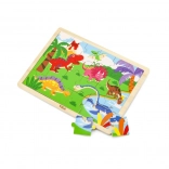 Drevené puzzle s roztomilým motívom dinosaurov potešia všetkých malých nadšencov do praveku. Vďaka 24 dielikom sú puzzle skvelou voľbou pre prvé samostatné skladanie, rozvoj koordinácie oko–ruka aj trpezlivosti. Kvalitné spracovanie a hladké hrany zabezpečujú bezpečnú a príjemnú hru.