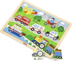 Drevené puzzle doprava 24 dielikov