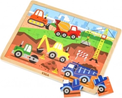 Objavte prvé skladanie s drevenými puzzle VIGA so stavebnými strojmi – ideálne pre deti od 2 rokov. Pevné drevené dieliky a rám uľahčujú manipuláciu, rozvíjajú jemnú motoriku, logické myslenie a trpezlivosť. Obrázok možno skladať v rámiku aj samostatne pre väčšiu výzvu.