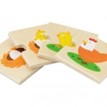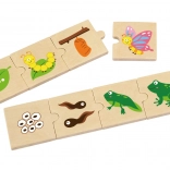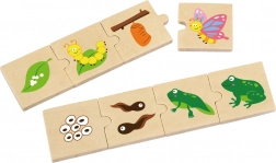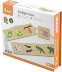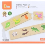 Táto sada drevených „rastúcich“ puzzle učí deti chápať životné cykly zvierat aj rastlín – od semienka či vajíčka až po dospelosť. Každý motív tvorí postupnosť dielikov, ktoré do seba logicky zapadajú, a pomáhajú tak prirodzene trénovať jemnú motoriku, vnímanie súvislostí a koordináciu oko–ruka.