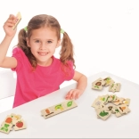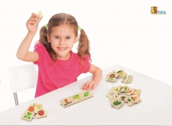 Pevné drevené dieliky s hladkými hranami sú odolné proti opotrebovaniu. Netoxické, sýte farby lákajú k hre a zaisťujú dlhú životnosť ilustrácií.