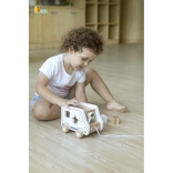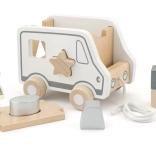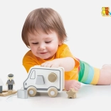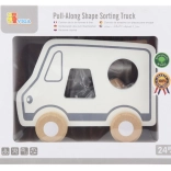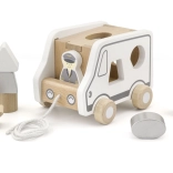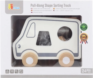 Táto drevená ťahačka v tvare nákladného auta spája dve obľúbené aktivity – ťahanie na šnúrke a vkladanie tvarov. Deti rozvíjajú poznávanie tvarov a priestorové vnímanie, zatiaľ čo si užívajú pohyb a fantazijnú hru s roztomilým autíčkom.