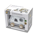 Vďaka pevnému drevenému spracovaniu a zaobleným hranám je hračka bezpečná a odolná na každodenné hranie. Kompaktné rozmery z nej robia skvelého parťáka doma aj na cestách.