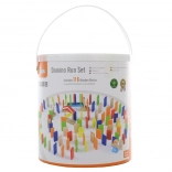 Hra rozvíja kľúčové zručnosti: trénuje súhru oko–ruka, podporuje koordináciu, presnosť pohybov aj spoluprácu medzi deťmi. Po zostavení stačí postrčiť prvý dielik a užiť si radosť z dokonalého dominového efektu. Praktické vedierko s rukoväťou uľahčuje ukladanie aj prenášanie.