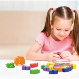 Poskladajte si tohto farebného slimáka, každý z jeho dielikov je označený písmenom abecedy. Tento zábavný a náučný puzzle nielen že podporuje učenie sa písmeniek, ale tiež zlepšuje jemnú motoriku a priestorovú orientáciu.
