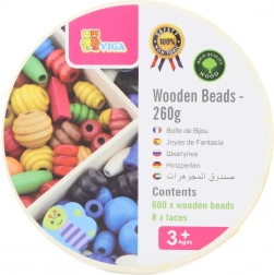 Drevené korálky Viga ponúkajú nekonečné možnosti pre tvorivosť a zábavu. Deti môžu pomocou 8 priložených šnúrok naviť celkovo 600 korálok, z ktorých môže vzniknúť krásne náramky a náhrdelníky. Táto hračka pomáha rozvíjať detskú kreativitu a jemnú motoriku.